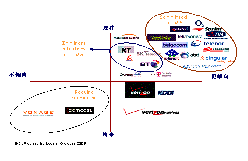 Yankee集團(tuán)的IMS調(diào)查,朗訊在IMS領(lǐng)域有著絕對(duì)的領(lǐng)先優(yōu)勢(shì),在技術(shù)和試驗(yàn)網(wǎng)上都優(yōu)越于競(jìng)爭對(duì)手。