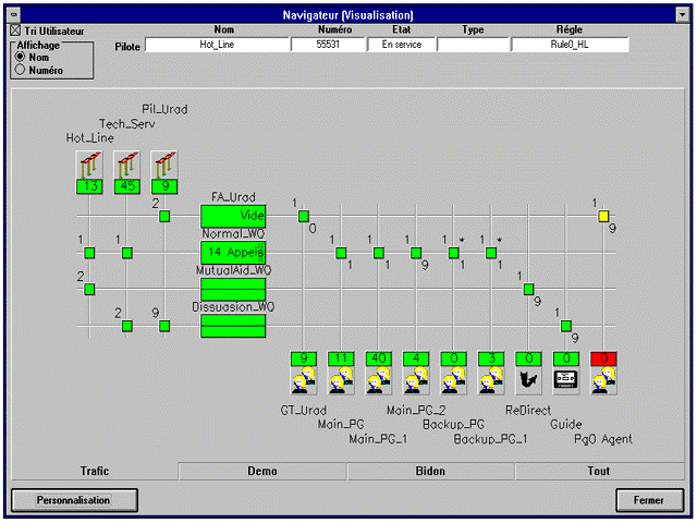 A4400 CCS 呼叫中心監(jiān)管系統(tǒng)是A4400 CCD 的完美配套設備。此監(jiān)管系統(tǒng)組件提供最新實時監(jiān)控功能。經(jīng)理和主管不僅能很好協(xié)調呼叫處理過程,而且也能觀察服務水準、話務量情況等,并能在現(xiàn)場采取相應的措施。