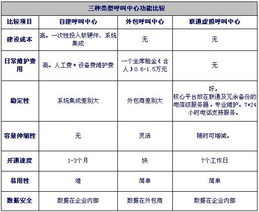 注1:自建和外包呼叫中心按目前市場平均價計算。虛擬呼叫中心按聯(lián)通標(biāo)準(zhǔn)資費(fèi)計算。外包坐席按裸坐席計算。