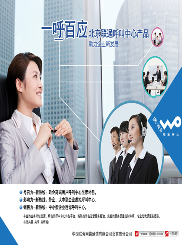 北京聯(lián)通外包呼叫中心的前身為奧運呼叫中心,2008年奧運會結束,先后承擔了奧運會、殘奧會賽會志愿者招募咨詢、奧運會、殘奧會票務咨詢、奧運特許商品質詢及“好運北京測試賽”等一系列與奧運會、殘奧會緊密相關的服務工作。