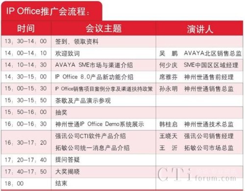 CTI論壇(ctiforum)3月6日消息(記者 潘婷婷): 2011年憑借廣泛的市場(chǎng)宣傳,Avaya IP Office以卓越的產(chǎn)品性能,突出的價(jià)格優(yōu)勢(shì)得到了廣大代理商的大力支持,取得了優(yōu)異的市場(chǎng)業(yè)績(jī)。為了與更多合作伙伴加強(qiáng)交流、密切合作,AVAYA 攜手神州世通,舉辦2012年Avaya IP Office產(chǎn)品渠道推廣大會(huì),屆時(shí)將邀請(qǐng)AVAYA領(lǐng)導(dǎo)、產(chǎn)品專家為大家講解 IP Offic 8.0新版本功能、分享經(jīng)典案例。同時(shí)神州世通將推出2012年代理商渠道扶持政策。