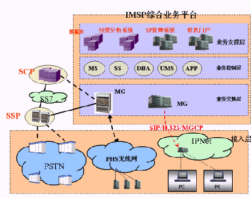 4、 支持標準的SIP/H.323協(xié)議,IMSP支持IP接入,系統(tǒng)可平滑過渡到下一代網(wǎng)絡(luò)(NGN),逐步建立符合標準的服務、網(wǎng)絡(luò)和終端,徹底取代原有相對獨立的應用服務、通信網(wǎng)絡(luò)和終端。;