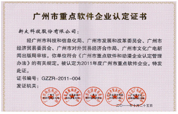新太科技連續(xù)4年蟬聯(lián)“廣州市重點軟件企業(yè)”稱號