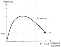 對(duì)客戶群的分析,經(jīng)濟(jì)理論界有一個(gè)著名的80-20理論,即在一個(gè)企業(yè)中,通常是20%的客戶貢獻(xiàn)了80%的利潤(rùn),而有可能40%的客戶加起來(lái)的利潤(rùn)還不到1%;而依照20-300理論,實(shí)際上20%的客戶,貢獻(xiàn)著企業(yè)300%的利潤(rùn),言外之意就是說(shuō),剩下的客戶可能是“吃”掉利潤(rùn)的人群。但是對(duì)于剩下的80%客戶,銀行可能要花費(fèi)更多的人力、物力去提供服務(wù),所以實(shí)際上銀行或企業(yè)很有可能在做虧本買(mǎi)賣(mài)。因此,分析客戶群,調(diào)配資源非常重要(如下圖所示)。