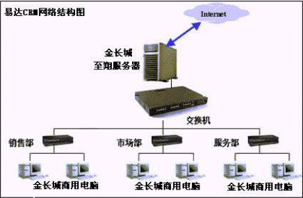 易達CRM應(yīng)用于小型網(wǎng)絡(luò)環(huán)境(或單機應(yīng)用),對于中小型企業(yè)只需建立PC級局域網(wǎng)絡(luò)環(huán)境即可,同時可以通過服務(wù)器聯(lián)入INTERNET,便于異地業(yè)務(wù)人員的數(shù)據(jù)錄入和EMAIL數(shù)據(jù)傳送。(在此易達CRM與相關(guān)品牌的PC服務(wù)器、PC商用機建立戰(zhàn)略合作關(guān)系,以較優(yōu)惠的價格向中小型企業(yè)提供性價比很高的全面解決方案包,這是對中小型企業(yè)用戶、硬件廠商、易達軟件三方均有益的解決方案)。