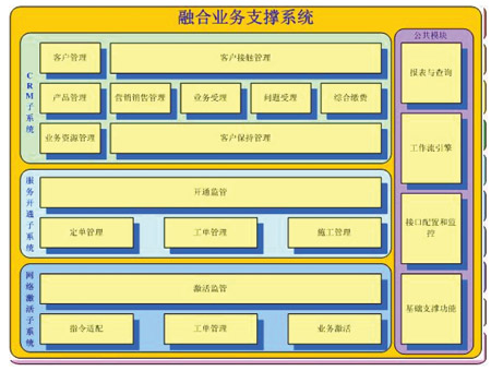 融合業(yè)務(wù)支撐系統(tǒng)提供對(duì)全業(yè)務(wù)運(yùn)營(yíng)的端到端的支撐能力,包括以下幾方面。