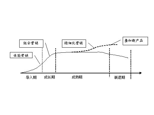 漏話業(yè)務(wù)是對現(xiàn)有基礎(chǔ)電信業(yè)務(wù)的延伸和補(bǔ)充,是建立在基礎(chǔ)通話服務(wù)基礎(chǔ)上的功能型增值業(yè)務(wù),在業(yè)務(wù)推廣中,應(yīng)根據(jù)業(yè)務(wù)的不同的發(fā)展階段,分別在業(yè)務(wù)的導(dǎo)入期、成長期、發(fā)展期和衰退期采取不同的營銷手段和措施,如下圖所示。