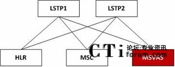 MSVAS平臺可以通過七號信令網(wǎng)與移動核心網(wǎng)中的各個網(wǎng)元進行對接,如與七號信令網(wǎng)中的LSTP進行對接,通過ISUP、TUP以及MAP對核心網(wǎng)中HLR、MSC、短信中心等網(wǎng)元進行訪問,實現(xiàn)移動管理(位置查詢)、呼叫處理(主要是獲取路由信息)、業(yè)務(wù)登記、短消息業(yè)務(wù)等功能,其連接方式如下圖所示: