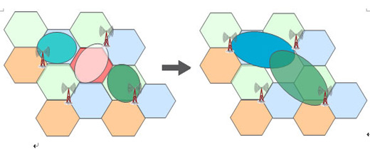 一旦出現(xiàn)退服,OSS會協(xié)調(diào)問題基站周邊基站的扇區(qū)來補償退服的無線覆蓋。如下圖,參與補償?shù)幕緯{(diào)整下行發(fā)射功率、天線傾角等來補償退服區(qū)域,甚至調(diào)低上行信號接收門限變相地擴大該扇區(qū)覆蓋以接入更多退服區(qū)域的終端。當然,由于扇區(qū)的調(diào)整,會造成鄰區(qū)關系變化、切換邊界變化、干擾增加,這些就需要OSS提供的其他功能ANR、MRO、ICIC來聯(lián)合優(yōu)化。