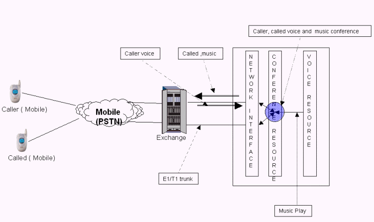 1、(圖一)用戶撥打?qū)Ψ教柎a的時(shí)候,只要先撥打"*76",然后撥被叫號碼,通話建立以后,該通話會有用戶所定義的背景音樂,如果用戶不撥"*76", 那么該通話將和普通通話效果一樣,沒有背景音樂。