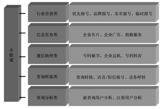 面向個人用戶提供簽約企業(yè)的話務轉接和報號業(yè)務。提高企業(yè)服務的質量,縮短企業(yè)間的距離。包括以下三類子業(yè)務:查詢轉接、短信/傳真報號、話務呼轉。
