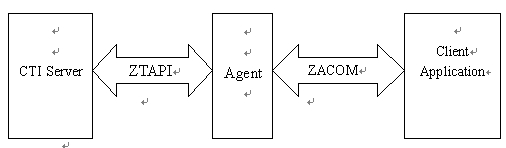 通常呼叫中心的座席軟件都需要用戶定制,以便在標(biāo)準(zhǔn)的座席功能上加入業(yè)務(wù)處理功能,并且要求能與業(yè)務(wù)系統(tǒng)交換數(shù)據(jù)。用戶可以利用ZTAPI接口直接定制自己的座席軟件,也可以使用Agent軟件自帶的COM開發(fā)接口來實(shí)現(xiàn)同樣的功能。后者是一種更便捷的機(jī)制,因?yàn)榭梢灾苯邮褂肸ingServ®標(biāo)準(zhǔn)的座席軟件--Agent的座席功能,用戶可以把更多的精力投入到業(yè)務(wù)處理功能,使用ZACOM要求使用時(shí)需運(yùn)行Agent軟件。ZACOM開發(fā)結(jié)構(gòu)示意圖如下: