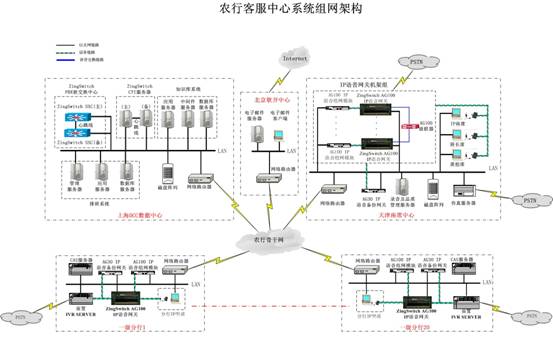 中國農(nóng)業(yè)銀行一體化客戶服務(wù)中心,包括“一個(gè)系統(tǒng)、兩個(gè)中心、36個(gè)分行節(jié)點(diǎn)”。一個(gè)系統(tǒng)是指全行的客戶服務(wù)中心基于同一套應(yīng)用系統(tǒng);兩個(gè)中心是指南、北兩個(gè)集中的人工座席服務(wù)中心;36個(gè)分行節(jié)點(diǎn)是指各分行的語音接入、自助服務(wù)應(yīng)用系統(tǒng)以及遠(yuǎn)端座席。