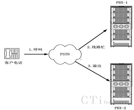 多套聯(lián)絡(luò)中心也可以通過PBX語音對接得方式實現(xiàn)呼叫互轉(zhuǎn),其中最典型的應(yīng)用就是溢出呼叫轉(zhuǎn)接,通過交換機(jī)轉(zhuǎn)接的方式,實現(xiàn)服務(wù)溢出處理。