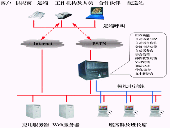 現(xiàn)代物流企業(yè)與以往的物流企業(yè)不同,不僅僅局限于物流中的某一個環(huán)節(jié),而是普遍采用了信息化管理技術,如ERP、物流管理(LM)、SCM等應用系統(tǒng),并通過Internet將遍布在各地的物流中心與客戶連接起來,形成一個高效率的物流配送網絡。建立在奧迪堅基于IP的分布式呼叫中心平臺上的客戶服務系統(tǒng),以IP技術為核心在網絡上構建一個語音和數(shù)據的統(tǒng)一平臺,在一臺服務器上融合了CTI、PBX、ACD、VoIP、Voice、Mail,Recording,Call Routing等技術和應用,實現(xiàn)網絡時代高效通訊所需所有常用功能。同時憑借其高度的靈活性和柔韌性,可以無縫地嵌入物流配送網絡的各個環(huán)節(jié),成為真正滿足現(xiàn)代物流企業(yè)需要的綜合性服務和營運中心,無論在世界的哪個角落,遠程IP座席和分布的異地機構都可以共享所有資源(語音、數(shù)據、座席),真正實現(xiàn)一個高效的、信息共享的分布式呼叫中心系統(tǒng)。