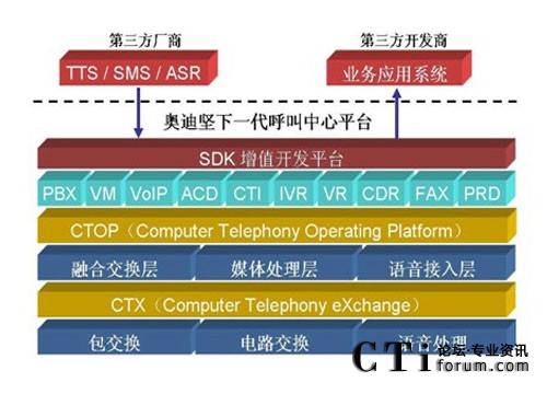 傳統(tǒng)型的語音交換機在設計之初,只側重于語音交換能力,并沒有考慮到呼 叫中心這種需要集成數(shù)據(jù)的應用模式,因此基于傳統(tǒng) TDM 交換機的呼叫中心系 統(tǒng)都需要外掛 CTI 服務器,至于基于語音板卡、傳統(tǒng)型 IP-PBX 或軟交換的呼叫 中心系統(tǒng)也不例外。而奧迪堅 IP 呼叫中心平臺在設計伊始,就專門針對于呼叫 中心的應用,在底層已經(jīng)將 PBX、CTI、IVR 等核心功能緊密地融合在一起了, 在系統(tǒng)集成度方面遠遠優(yōu)于傳統(tǒng) TDM 交換機、語音板卡、傳統(tǒng)型 IP-PBX 或軟 交換的解決方案。