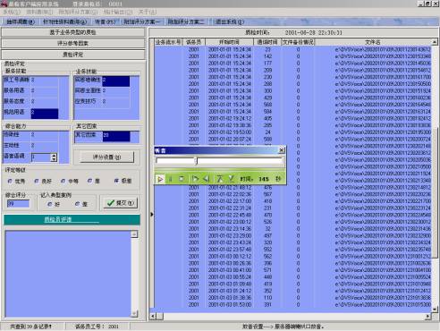 下圖為AP Suite質(zhì)檢平臺(tái)的調(diào)聽(tīng)界面,在該界面的左側(cè)為該話務(wù)員的得分情況,右側(cè)為通話記錄。從此圖可以找出某一話務(wù)員的薄弱環(huán)節(jié),在以后的培訓(xùn)和學(xué)習(xí)中就有了針對(duì)性。