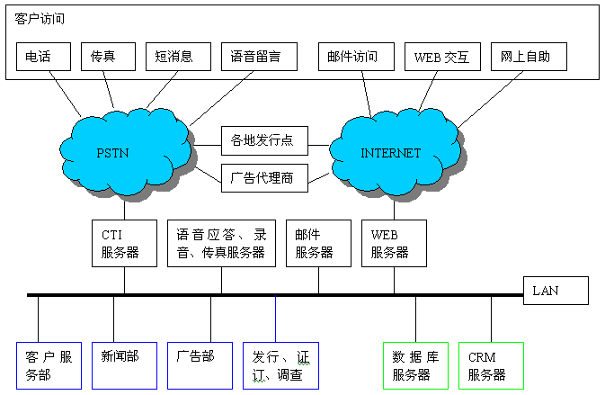 大多數(shù)媒體單位都提供自己的新聞線索熱線電話,廣告熱線電話,許多媒體擁有自己的宣傳網(wǎng)站,有的媒體單位率先建立起呼叫中心,提供7*24的服務(wù)。有些觀點(diǎn)錯(cuò)誤地認(rèn)為CRM是呼叫中心的附屬品,因而不能充分發(fā)揮CRM的強(qiáng)大功效,讓整個(gè)單位以客戶為中心協(xié)同運(yùn)作,提高競(jìng)爭(zhēng)力。