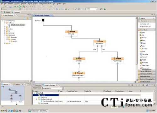 界面使用了標(biāo)準(zhǔn)的呼叫流程設(shè)計組件創(chuàng)建語音應(yīng)用程序