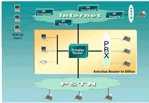 對于普通的傳真機(jī),ExtraFax Router是更合算的選擇。它不僅不需要額外的網(wǎng)關(guān)設(shè)計(jì),而且它還可以自動(dòng)計(jì)算長途計(jì)費(fèi)單。最重要的是它可以自動(dòng)尋找最佳路徑 (即最節(jié)省的方式) 通過Internet/Intranet發(fā)送傳真,同時(shí)ExtraFax Router基于DID/DTMF/CSID/PORT/Channel的自動(dòng)分發(fā)到個(gè)人的傳真信箱也降低了人工管理的費(fèi)用并能實(shí)現(xiàn)傳真的安全性。