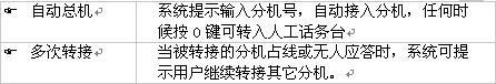 1). 當(dāng)您撥打總機(jī)號(hào)碼進(jìn)入電腦話務(wù)員時(shí)就聽(tīng)到系統(tǒng)提示音"您好!XXX公司,請(qǐng)直撥分機(jī)號(hào),查號(hào)請(qǐng)撥0"。這句系統(tǒng)提示音可通過(guò)管理員訪問(wèn)由管理員根據(jù)需要自行錄制。參見(jiàn)管理員訪問(wèn)中的介紹。