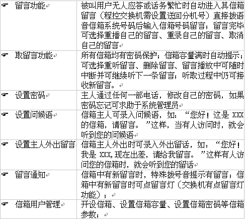 系統(tǒng)信箱號(hào)碼:在交換機(jī)數(shù)據(jù)庫(kù)中設(shè)置,主人或管理員直接訪問(wèn)時(shí)需拔打此號(hào)碼。