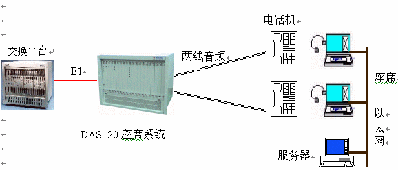 ·DAS120與交換平臺(tái)采用E1連接,信令為透明通道Clear Channel。所有通道在初始化時(shí)就實(shí)現(xiàn)連接。