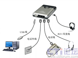 “話務(wù)通”設(shè)計新穎,接口包括電話線路接口、電話機接口、耳機接口和USB通信接口。配置立體聲揚聲器和環(huán)型提示燈,提供聲光提示!霸拕(wù)通”能夠提供IP網(wǎng)絡(luò)電話,自動應(yīng)答,自動外撥,來電彈屏,語音錄放,語音留言等功能。