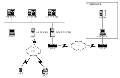 根據(jù)業(yè)務(wù)需求,電話銀行前置機(jī)以 PC服務(wù)器(聯(lián)想萬全服務(wù)器)為硬件平臺(tái),通過PSTN網(wǎng)接電話機(jī)、傳真機(jī)以及其他查詢終端,另一端接電話銀行前置機(jī)中的語音卡。