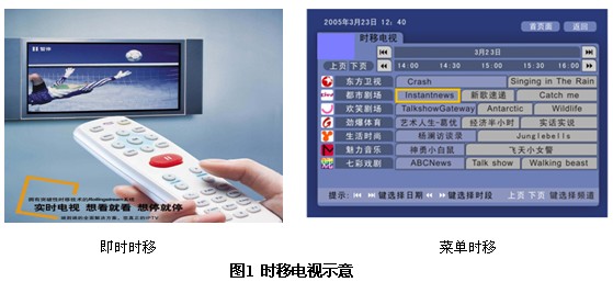 即時時移指用戶在觀看直播電視的同時,支持暫停、快退、快進、定位、切換、狀態(tài)顯示、時間顯示等操作。使用戶不再受節(jié)目播出時間的限制,而且可以直接挑選自己喜歡觀看的節(jié)目,跳過不感興趣的節(jié)目。通過時移電視(Time-shifted