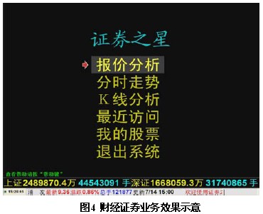 斯達康奔流系統(tǒng)的“證券之星”業(yè)務(wù)基于電視界面提供用戶一種易接受的信息讀取方式,可以有效地滿足這部分人群的需要。用戶通過遙控器和電視,可實現(xiàn)股票大盤行情顯示、個股實時行情分析、各種走線趨勢圖的瀏覽等功能。