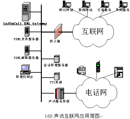 穎科VoiceXML技術(shù)成功應(yīng)用于遼寧電信168聲訊互聯(lián)網(wǎng)系統(tǒng),也是VoiceXML技術(shù)在國內(nèi)首次成功實現(xiàn)電信級應(yīng)用。在原有的聲訊平臺上,通過新添加的穎科VXML系統(tǒng),可以充分利用VoiceXML的優(yōu)勢,實現(xiàn)增值業(yè)務(wù)快速得開發(fā)、部署、和更改,借助IXG工具,能夠快速得開發(fā)出互聯(lián)網(wǎng)聲訊業(yè)務(wù)。