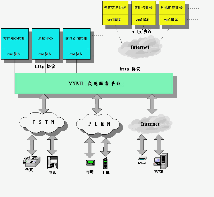 基于VXML的語音應(yīng)用平臺使得象電話這種最傳統(tǒng)的通訊工具可以實(shí)時便捷地訪問因特網(wǎng),而無需任何座席的幫助。