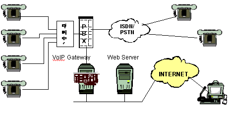 上。當(dāng)用戶點擊這一按扭時,VoIP的應(yīng)用程序,比如NetMeeting,將自動地在他們的計算機中啟動。這個應(yīng)用程序?qū)⒋蜷_同DIVA VoIP 網(wǎng)關(guān)服務(wù)器的連接,然后再由網(wǎng)關(guān)連接到