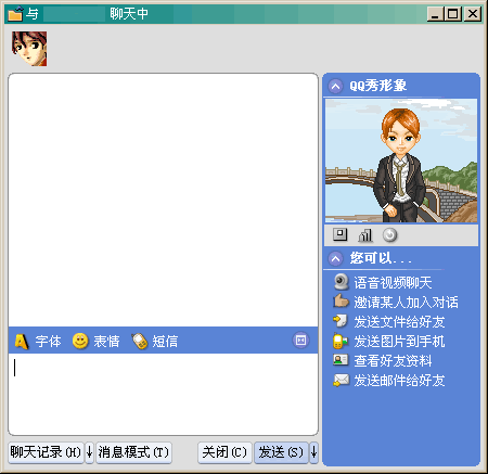 從聊天界面來看,兩者的類似更多。MSN Messenger 6.0在聊天界面比以前有了大幅改變,增加了聊天的兩者的頭像,并且可以方便的對自己的頭像進行修改。同時還可以輕松的修改聊天界面的背景。同時可以通過上面的圖標按鈕邀請他人參與,發(fā)送文件,視頻聊天等。QQ 2003的聊天界面也增加了聊天對象的QQ秀形象的顯示,并且增加了一些常用按鈕,邀請他人參與、發(fā)送文件等。