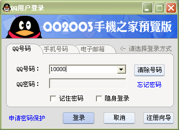 登陸方式在登陸方式上,QQ 2003進行大的改變。由于QQ號碼位數(shù)的增加,有的QQ號碼已經(jīng)達到了九位非常難記,QQ 2003則增加手機號碼和Email登錄方式,通過手機和Email與QQ的綁定,可以輕松的通過電子郵件和手機號碼登陸。MSN Messenger 6.0依然采用基于.net Passport的電子郵件帳戶進行登陸。