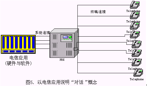 一般來(lái)說(shuō),一個(gè)基于電話語(yǔ)音識(shí)別的對(duì)話系統(tǒng)(如圖5所示),一般由識(shí)別服務(wù)器、應(yīng)用服務(wù)器、電話交換機(jī)、智能交換機(jī)設(shè)備、 IVR設(shè)備等設(shè)備組成,電話交換機(jī)與成千上萬(wàn)個(gè)電話終端通過(guò)各種交換設(shè)備相連接,電信應(yīng)用軟件在這些硬件的支持下提供各種服務(wù),如:1860查詢(xún)服務(wù)等。此時(shí),電信應(yīng)用開(kāi)通的線數(shù)視系統(tǒng)的業(yè)務(wù)需求而定,一般總是大大小于終端連接的總數(shù)。系統(tǒng)連接數(shù)與終端連接數(shù)常常是1:1000或者1:10000的級(jí)別。"一路對(duì)話"是指物理上的一條線路,對(duì)于上述的電信應(yīng)用,電信開(kāi)通的每一條線路都是一路對(duì)話。