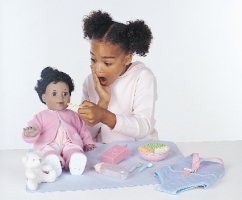 更象真正的孩子,每一個(gè)“我的夢(mèng)想娃娃”都是一個(gè)不同的個(gè)體,有著不同顏色的頭發(fā)、眼睛,不同的膚色和種族背景。夢(mèng)想娃娃要三節(jié)電池9V電壓供電。上電啟動(dòng)后,夢(mèng)想娃娃會(huì)立即提示“現(xiàn)在該給我起個(gè)名字了”。一旦建立了名字并得到確認(rèn)后,就會(huì)有一個(gè)簡單的編程順序讓父母?jìng)冊(cè)O(shè)置當(dāng)前日期、孩子的生日和慶祝日。
