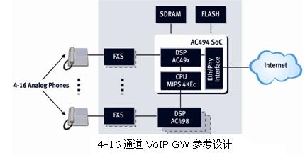 最后但并非最小的應用是網(wǎng)關。更高密度的網(wǎng)關(最高達16個信道)也要求一個集成和完整的VoIP應用。在這種情況下,工程師更愿意選擇芯片組以針對不同產(chǎn)品提供可伸縮的解決方案,并為所有解決方案利用相同的軟件成果。