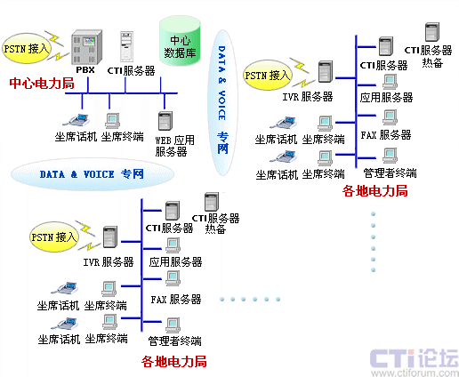 整個系統(tǒng)的物理構(gòu)成包括:程控交換機(jī)、CTI服務(wù)器、IVR/FAX服務(wù)器、業(yè)務(wù)代表座席、管理工作站(計(jì)費(fèi)、統(tǒng)計(jì)、系統(tǒng)管理、網(wǎng)絡(luò)管理)、電話錄音留言系統(tǒng)、數(shù)據(jù)庫服務(wù)器、應(yīng)用服務(wù)器、WWW服務(wù)器、網(wǎng)絡(luò)系統(tǒng)、網(wǎng)關(guān)等。