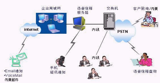 - 和特定交換機配合,使得無論人工還是自動轉接的電話,都能得到語音信箱功能服務