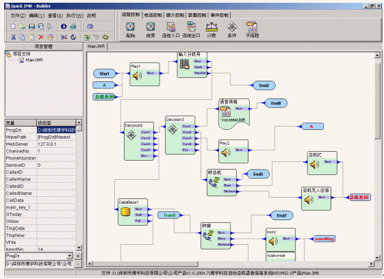 支持語音流程自動生成功能,便于擴展業(yè)務:系統(tǒng)提供功能強大的應用開發(fā)環(huán)境:可視化語音流程開發(fā)環(huán)境、DLL功能加載、人工座席控制等;提供在線調試工具、預編譯功能及錯誤檢查功能;提供開放的應用層接口,動態(tài)加載新的業(yè)務模塊