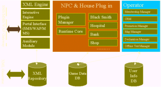 基于上述的因素,北京市萬(wàn)隆然博科技有限責(zé)任公司率先在國(guó)內(nèi)推出了無(wú)線互連游戲平臺(tái),把游戲的快速開(kāi)發(fā)、游戲的運(yùn)行引擎和游戲的客戶服務(wù)管理集成在一體。方便了短訊運(yùn)營(yíng)商的運(yùn)營(yíng)。同時(shí),然博科技通過(guò)分析各類游戲的特點(diǎn)和無(wú)線交互方式的特點(diǎn)。具有獨(dú)創(chuàng)性的推出了一種游戲描述XML格式。通過(guò)然博科技提供的離線工具,游戲策劃人可以自己編寫腳本,自己定義場(chǎng)景,進(jìn)行仿真。同時(shí),上傳到實(shí)際運(yùn)行的服務(wù)器端。真正的實(shí)現(xiàn)了短信門戶的個(gè)人創(chuàng)作工具。使得短信門戶真正的可以與傳統(tǒng)的Web門戶有相同的運(yùn)營(yíng)模式。ICP可以通過(guò)出賣短信服務(wù)器的硬盤空間來(lái)實(shí)現(xiàn)與內(nèi)容宿主共同盈利的模式。