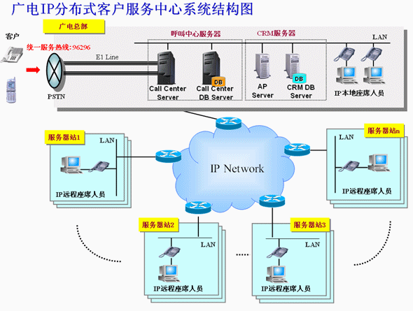 充分利用廣電已有的優(yōu)秀的寬帶網(wǎng)絡(luò)條件,建立IP分布式服務(wù)模式,以城市的各廣電服務(wù)站為單位,實(shí)現(xiàn)本服務(wù)站覆蓋范圍內(nèi)的用戶優(yōu)先由本服務(wù)站座席人員服務(wù)的本地化服務(wù),一方面解決了總部集中服務(wù)的場(chǎng)地、交通、管理等方面的壓力,另一方面本地化服務(wù)也加快了交流的有效性,提高了解決問(wèn)題的效率,體現(xiàn)出廣電差異化服務(wù)的特色;