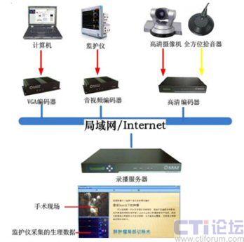 銳取遠程醫(yī)療系統(tǒng)前端視音頻編碼器將采集到的手術(shù)室監(jiān)護儀的信號進行實時編碼和壓縮,通過網(wǎng)絡(luò)傳送給多媒體錄播系統(tǒng)遠程醫(yī)療系統(tǒng)后臺服務(wù)器上。