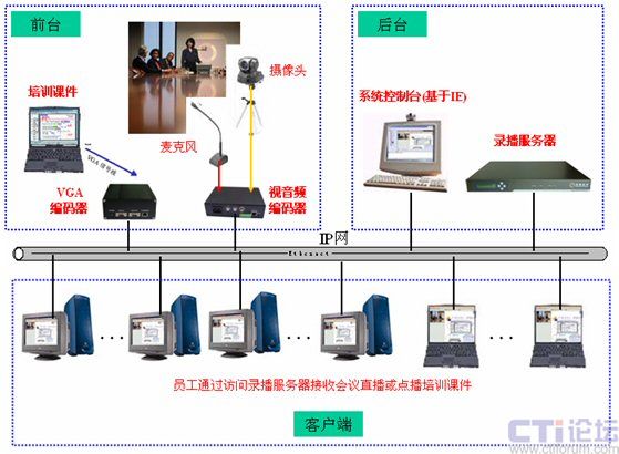 公司經(jīng)常會組織各種培訓(xùn),以往都是將員工召集到一起進行集中面對面的培訓(xùn),如果參與培訓(xùn)人員太多,往往就要分場次的培訓(xùn),這樣培訓(xùn)的效率太低,因此希望構(gòu)建一套基于網(wǎng)絡(luò)的培訓(xùn)平臺,增強培訓(xùn)效率。同時,通過培訓(xùn)系統(tǒng)也可以對企業(yè)的日常會議進行錄播,方便會議精神更好的傳達到每個員工的心中。