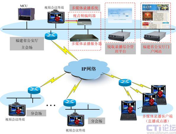本次采購的銳取多媒體錄播系統(tǒng)不僅能夠與省公安廳已有的視頻會議系統(tǒng)配合進行視頻會議的錄制、直播、點播,還能與視頻會議系統(tǒng)配合實現(xiàn)跨地域的“在線訪談”實時直播、錄制和點播。沒有參加會議或者是沒能收看直播的用戶都能夠在事后點播再收看,避免了專用設備功能單一的缺點,真正的一機多用。