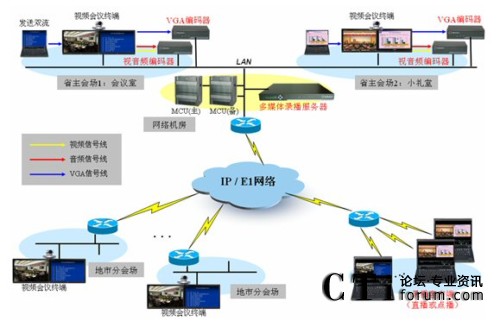 處于系統(tǒng)可靠性的考慮,湖北省政府視頻會(huì)議系統(tǒng)采用了E1(H.320)、IP(H.323)雙網(wǎng)絡(luò)備份模式,即要求MCU、終端,錄播服務(wù)器等設(shè)備均支持H.323和H.320模式。