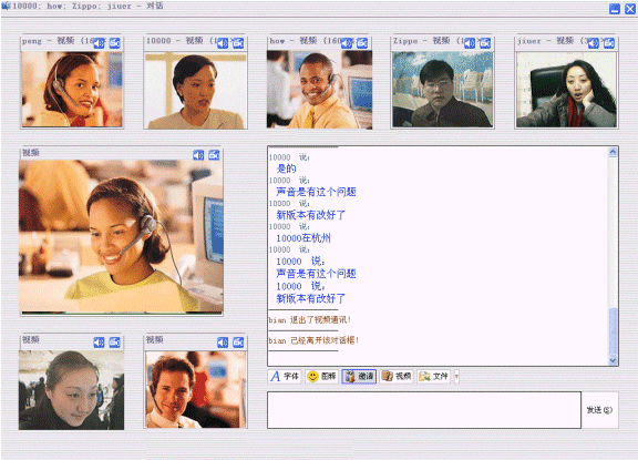 此套系統(tǒng)可隨時(shí)支持點(diǎn)對(duì)點(diǎn)、2方或3方視頻語音聊天,文字聊天,文件傳輸?shù),并且可達(dá)到高清晰的圖像質(zhì)量,點(diǎn)對(duì)點(diǎn)時(shí)可將對(duì)方圖像放大到全屏,讓您感受無與倫比的視頻通訊魅力。
