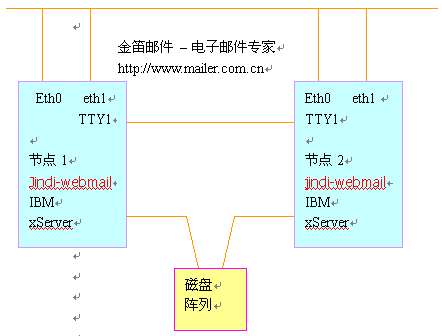 本項(xiàng)目采用金笛集群郵件系統(tǒng),通過兩臺IBM PC服務(wù)器實(shí)現(xiàn)高可用性。支持SMTP, POP3,IMAP等主流協(xié)議,支持WebMail,支持郵件列表等功能,同時要求兼容性好,與網(wǎng)站其他業(yè)務(wù)系統(tǒng)沒有沖突。